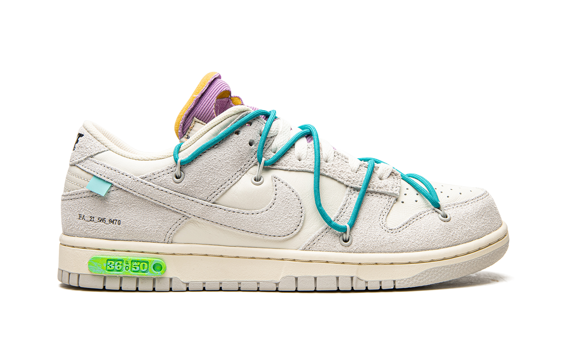 Included accessories: Light purple OW ziptie, Yellow "Off-White" paper